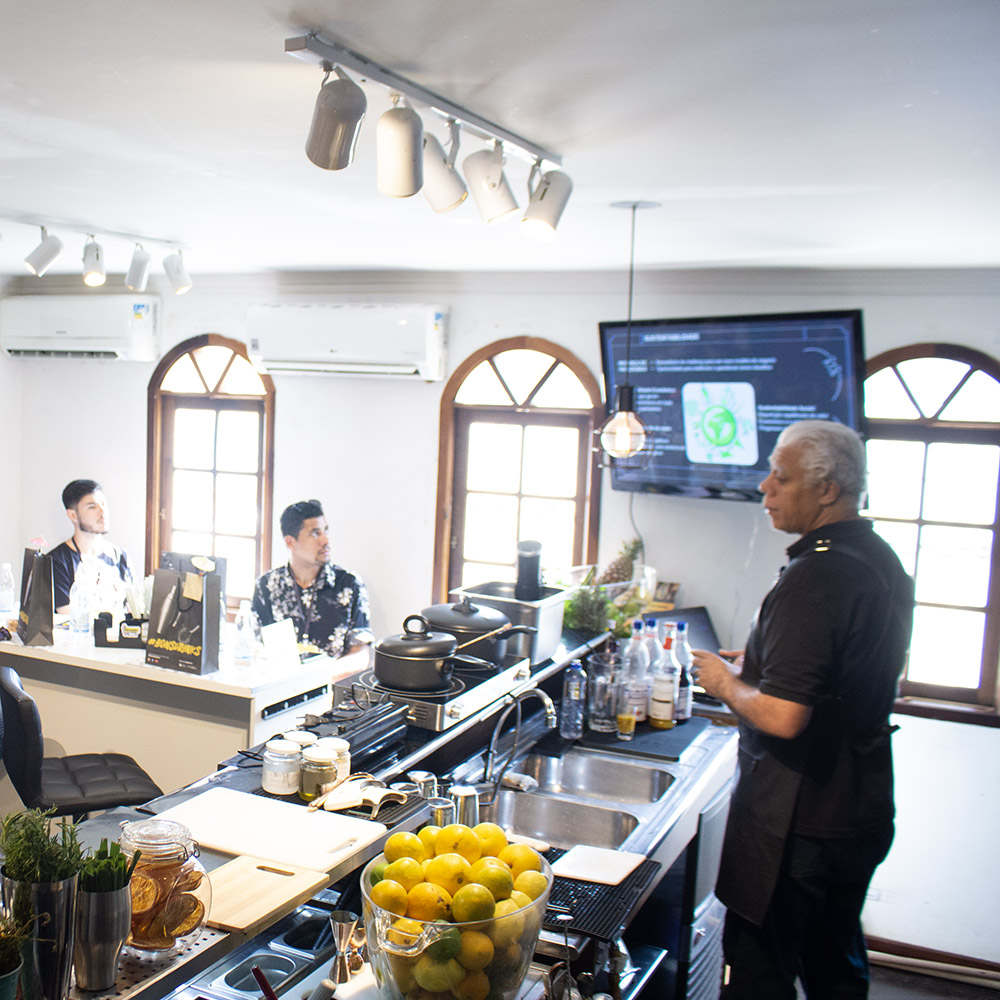 Responsável pela elaboração de coquetéis para grandes marcas, com mais de 30 anos de experiência, é um dos mixologistas e consultores mais respeitados do Brasil, e ainda com presença internacional na Grécia, Suíça, Itália e Argentina.